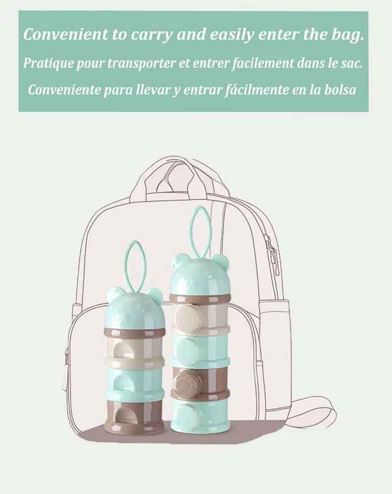 Avec ses trois compartiments vissables, la boîte offre un espace de stockage séparé pour les portions de lait en poudre nécessaires à chaque biberon. Chaque compartiment est hermétiquement fermé pour préserver la fraîcheur et la qualité du lait.