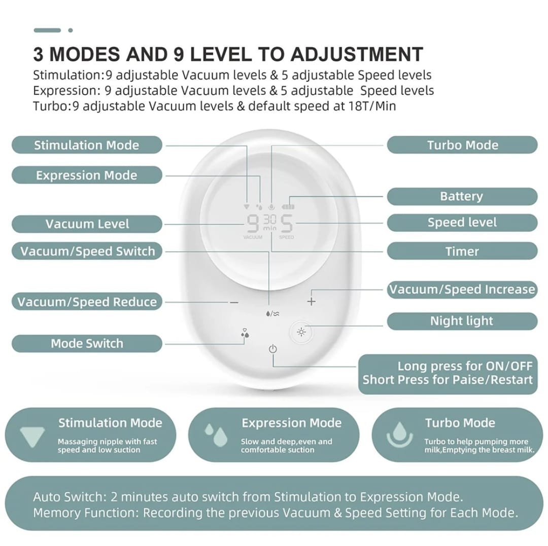 Polyvalent, ce tire-lait s’adapte à vos besoins : utilisez-le en mode simple ou double selon le moment et votre niveau de lactation. Il est livré avec deux tailles de téterelles (21 mm et 25 mm) ainsi qu’un guide de mesure, afin de garantir un ajustement parfait et une extraction optimale. D’autres tailles sont également disponibles séparément pour un confort maximal.