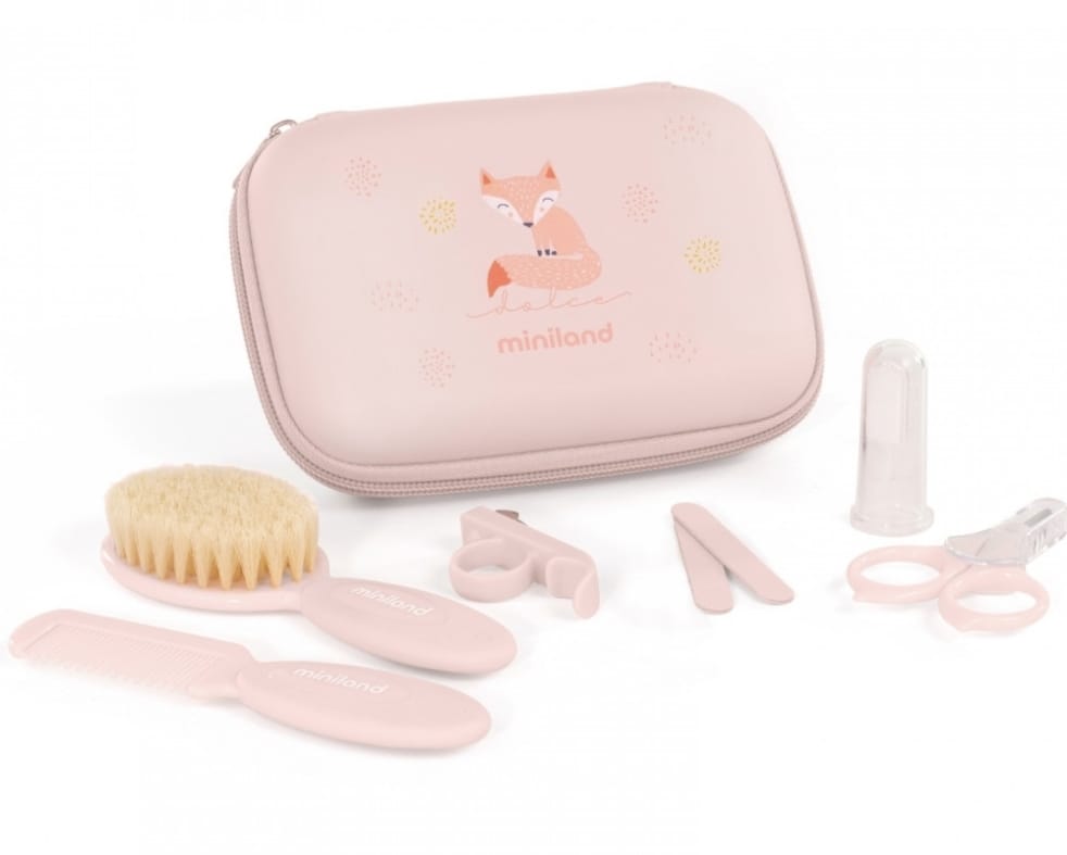 Miniland propose cette trousse de toilette composée de 6 accessoires, les plus essentiels pour la toilette quotidienne et les soins de bébé.