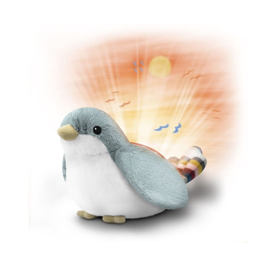 Shally le moineau transforme la chambre de votre petit en un magnifique coucher de soleil pour lui assurer le meilleur des sommeils. Shally projette le soleil orangé et les oiseaux volant dans la pièce tout en jouant des sons relaxants tels que coucher de soleil africain, battements de cœur ou berceuses. Son programme d’endormissement en 3 étapes aide votre petit à s’endormir en affaiblissant progressivement l’animation. Le projecteur s’éteint automatiquement au bout de 30 minutes.